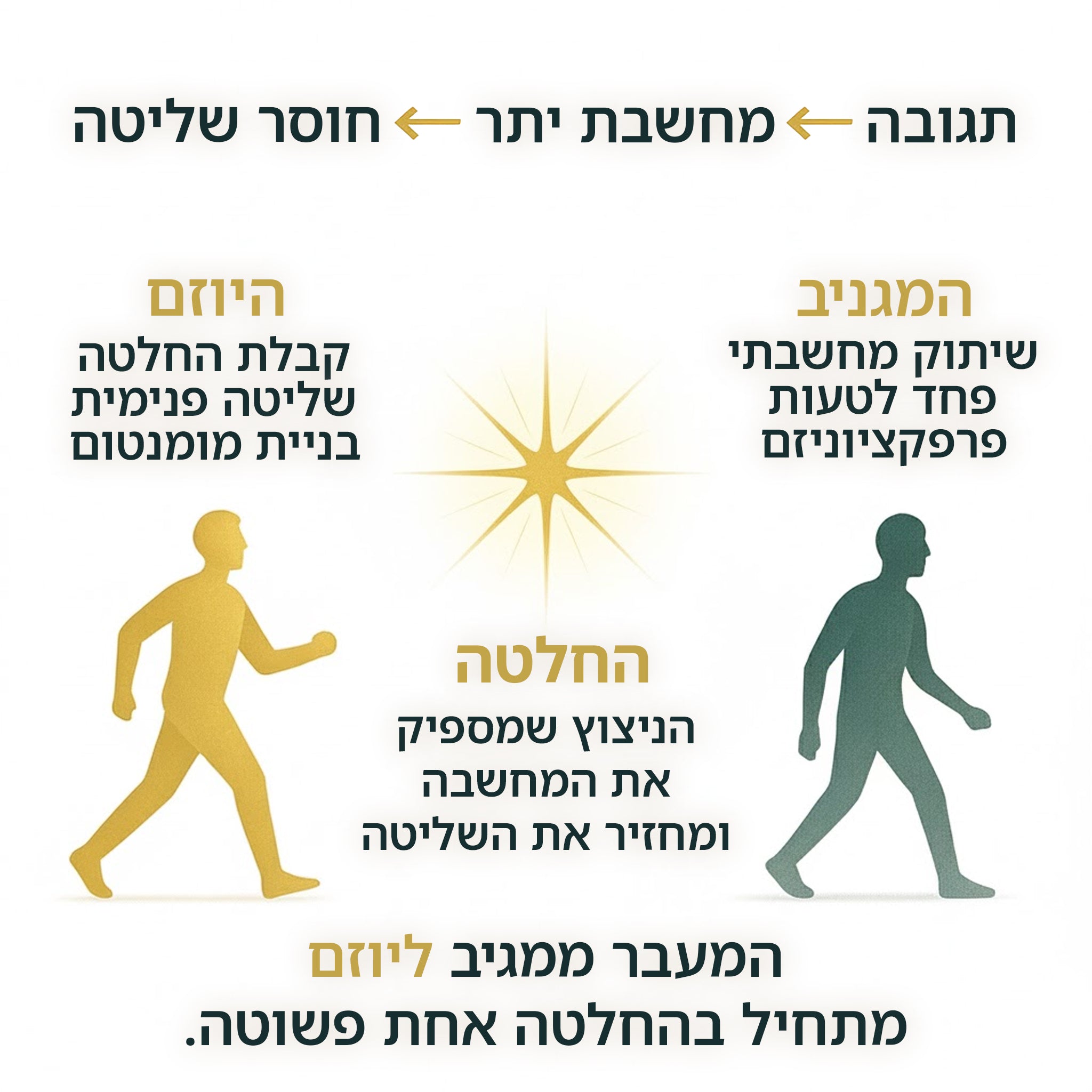 החלטה כניצוץ: כלי שמנטרל מחשבת יתר. רגע ההכרעה משחרר דופמין, יוצר סגירות קוגניטיבית, ומחזיר לך תחושת שליטה.